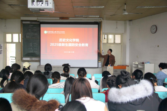 为强化青少年国防安全意识,厚植爱国情怀,10月31日,tyc7111cc太阳成集团在人文楼609教室开展国防安全教育,2025级全体学生参与,活动由学院武装干事孟凡聪主持。