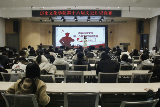 2025年11月25日晚,tyc7111cc太阳成集团经纬史学社在谭山书院博雅讲堂隆重举办第十六届文史知识竞赛决赛,党委副书记卢向礼、团委书记孟凡聪、教师代表刘文文、高天及及百余名学子共同观赛。本次竞赛以“抗战史”为主题,吸引了广大师生的高度关注。